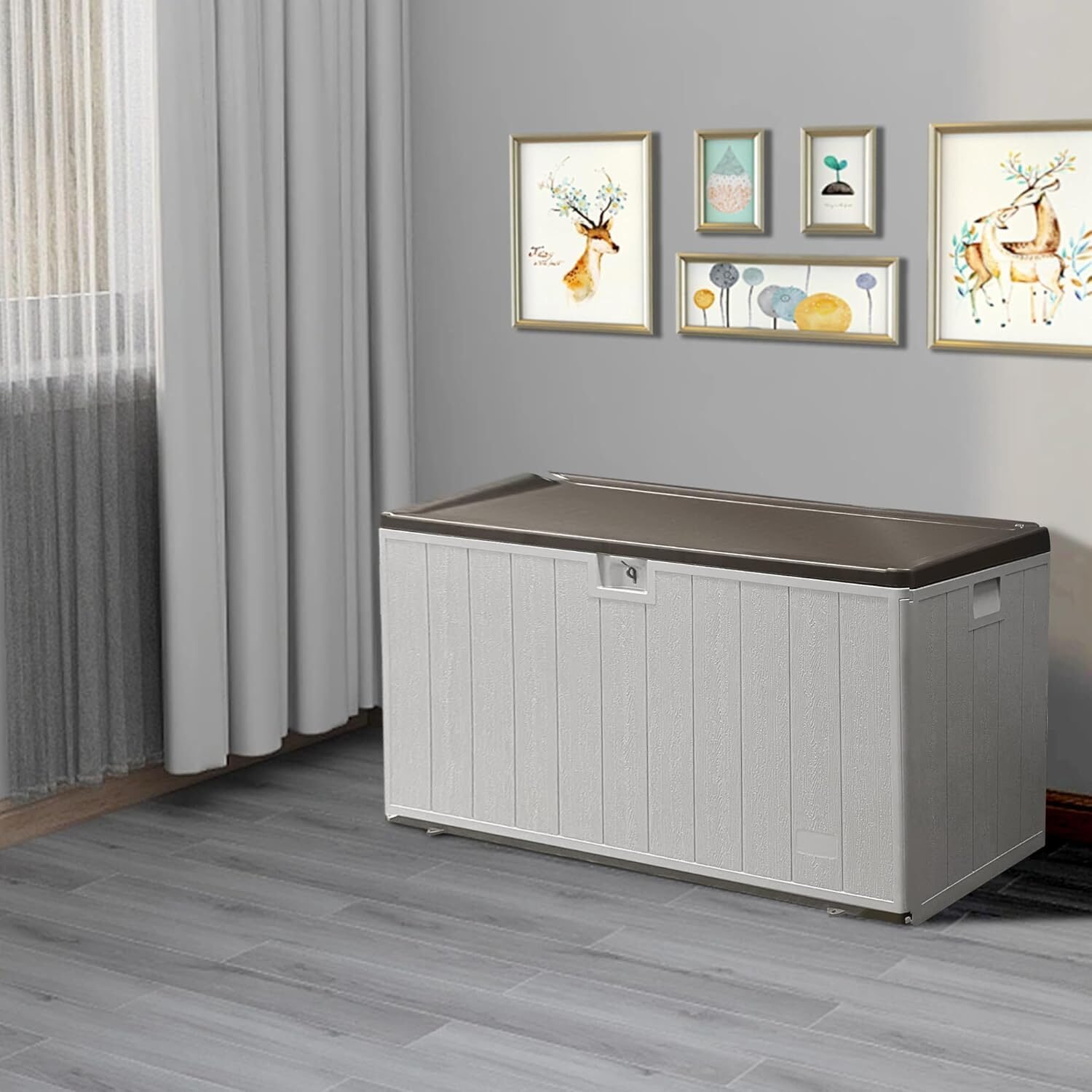 110 Gal Resin Deck Box – Waterproof Lockable Outdoor Bin