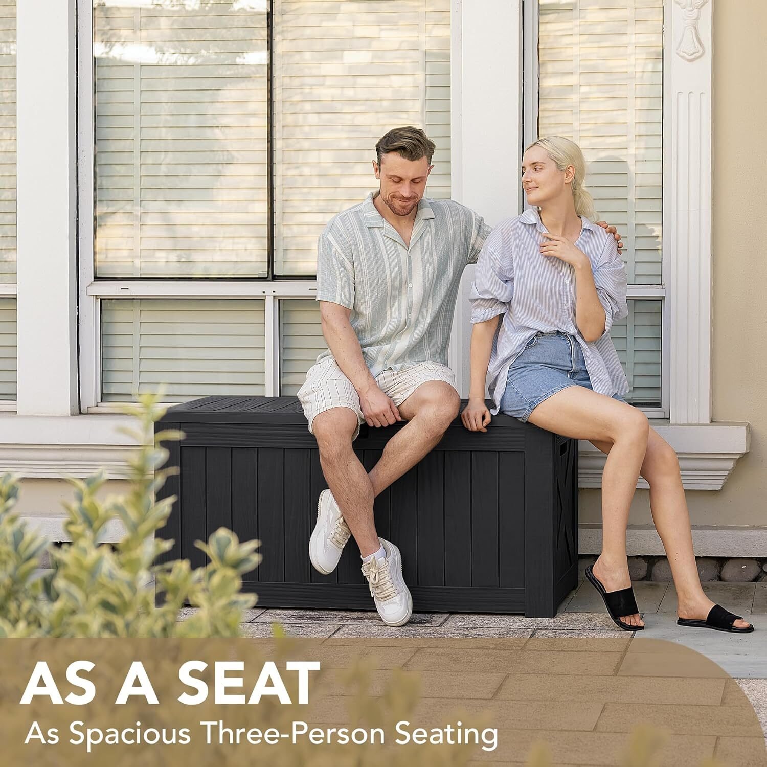 120 Gal Waterproof Deck Box – Resin Outdoor Storage (Black)