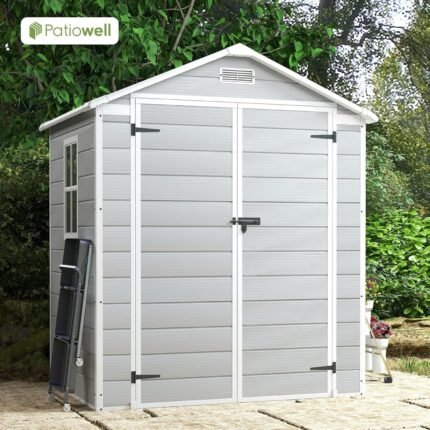 6×4 FT Plastic Outdoor Shed – Light Grey Resin Garden Storage